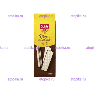 Безглютеновые кукурузные вафли с какао-кремовой начинкой Wafer al Cacao итальянской компании Dr.Schär – кондитерское изделие от лидера европейского рынка по выпуску безглютеновых продуктов для повседневного питания больных целиакией. Продукт произведен из экологически чистого сырья, с соблюдением строгих технологических требований и экологических стандартов Европейского союза, отмечен международным значком “Gluten free”. Печенье не содержат глютена, пшеничного крахмала, яиц, молока и консервантов, имеют натуральный вкус, высокое содержание волокон, без ГМО.