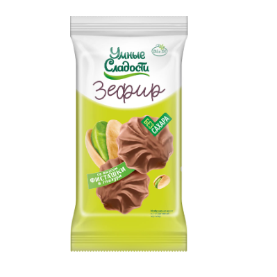подсластитель мальтит, пюре яблочное, патока* крахмальная карамельная, вода питьевая, желирующий агент пектин, белок яичный, регулятор кислотности кислота молочная, влагоудерживающий агент лактат натрия, ароматизатор натуральный "Фисташка", комплекснаця пищевая добавкакраситель синий патентованный V м экстракт картамуса "Тархун", консервант сорбат калия, подсластитель стевиозид (стевиолгликозиды), глазурь кондитерская (подсластитель мальтитол, заменитель какао-масла нелауриниового типа, молоко сухое обезжиренное, какао-порошок, эмульгатор лецитин соевый, ароматизатор). *Патока крахмальная карамельная - это патока с глюкозным эквивалентом 36-44%, в отличие от высокосахаренной, эквивалент которой составляет до 70%.