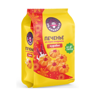 мука кукурузная крупного помола, маргарин, сахар-песок, вода питьевая, мука амарантовая грубого помола, крахмал кукурузный, волокна пищевые цитрусовые, яичный порошок, топинамбур сушеный, соль, загустители: ксантановая камедь, гуаровая камедь, джем клубничный (концентрат яблочного сока, яблочное пюре, патока крахмальная карамельная, клубничное пюре, глицерин, цитрусовая клетчатка, вода питьевая, подсластители: эритритол, сукралоза, стевиозид (стевиолгликозиды), загуститель: крахмал кукурузный модифицированный, ароматизатор натуральный ""Клубника"", краситель кармин, консервант: сорбат калия). Могут содержаться следы молочных продуктов, ядер орехов и арахиса.